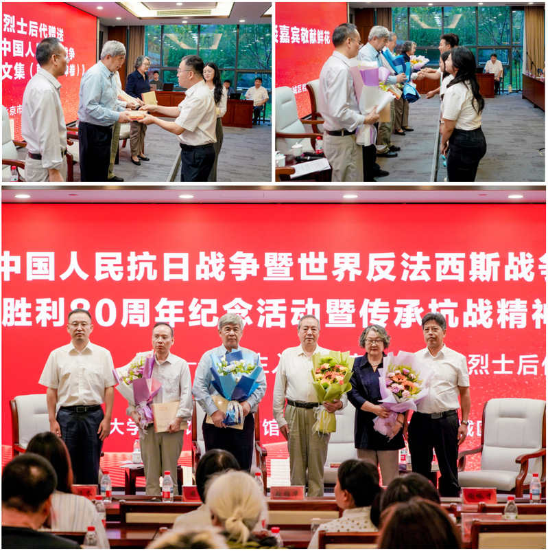 访谈结束后,东城区档案馆馆长王志丹向抗战烈士后代赠送《紫禁之东 光影流年——纪念中国人民抗日战争暨世界反法西斯战争胜利80周年图文集(乾卷·坤卷)》,中国传媒大学新生代表向抗战烈士后代敬献鲜花。