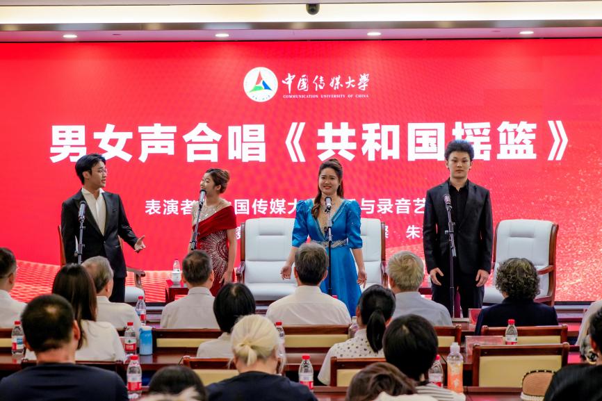 音乐与录音艺术学院学生演唱歌曲《共和国摇篮》拉开了访谈的序幕。