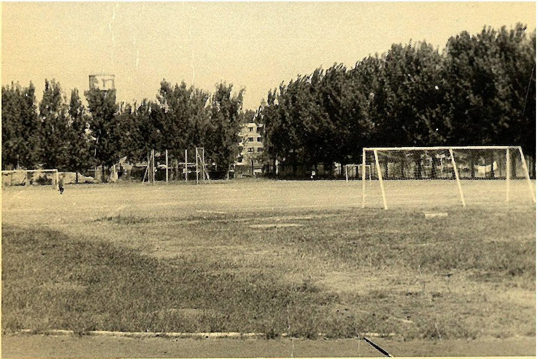 体育场原来没有任何铺设,地面是松软的土地,跑道周围种着一圈白杨树。这里不仅是学生进行体育锻炼的重要场地,还是播音系学生练习发声的地方,清晨站在白杨树下练声的学生成为那时候校园里一道独特的风景线。